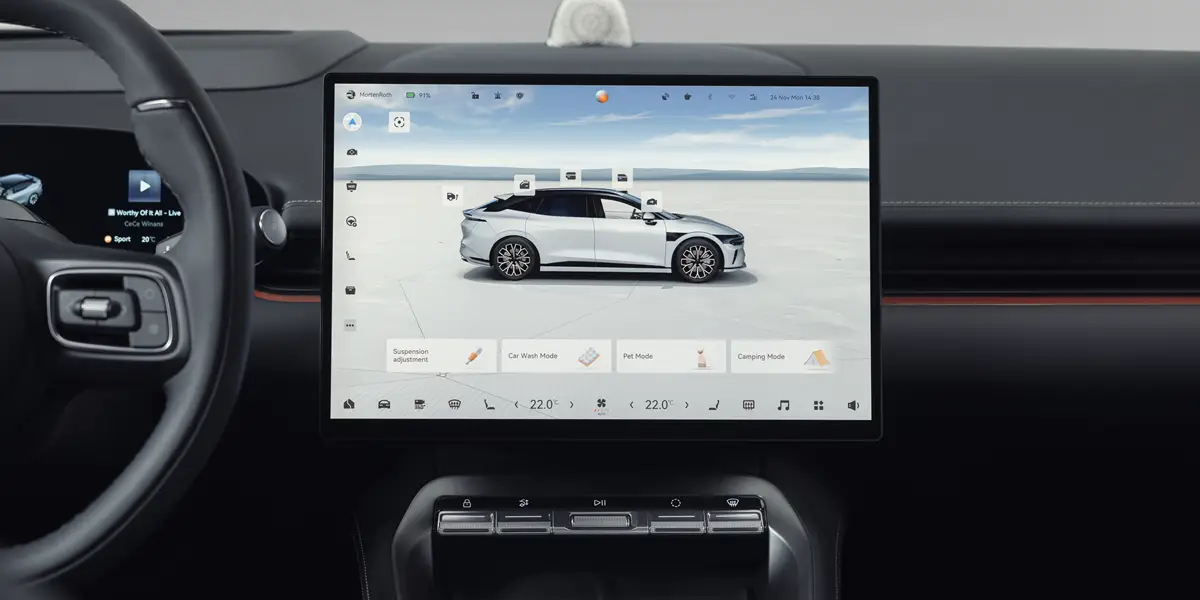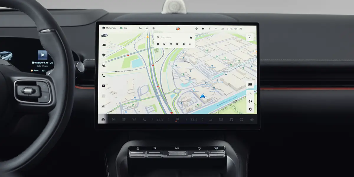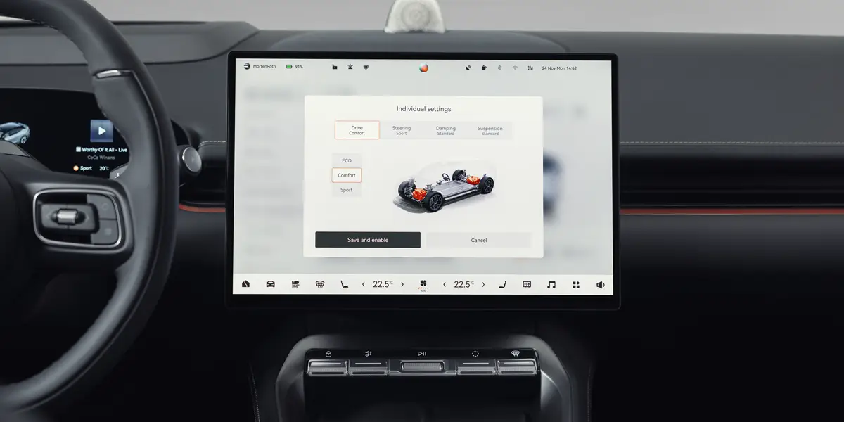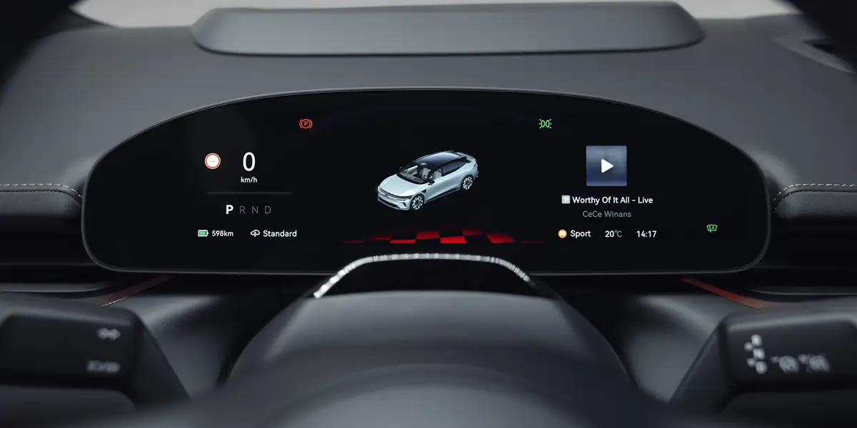Interiøret er designet med fokus på teknologi og premiumfølelse. Et moderne digitalt cockpit med stor infotainment-skjerm og avanserte førerassistentsystemer gir en trygg og komfortabel kjøreopplevelse både på korte og lange turer.